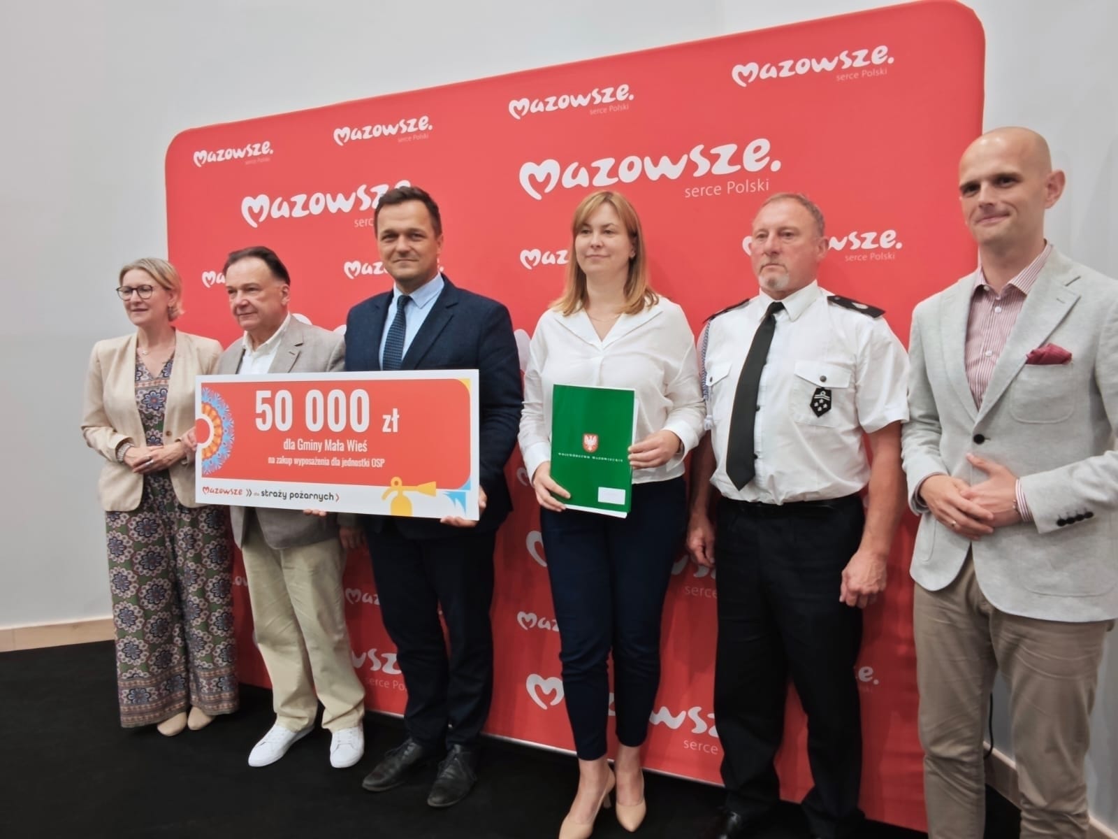 14 sierpnia 2025 roku w Muzeum Mazowieckim w Płocku, w oddziale ART DECO przy ul. Kolegialnej 6, Wójt Gminy Mała Wieś, Albin Dynarek, przy kontrasygnacie Skarbnika Gminy Mała Wieś, Moniki Stypułkowskiej, podpisali umowę z Marszałkiem Województwa Mazowieckiego Adamem Struzikiem oraz Wicemarszałkiem Województwa Mazowieckiego Wiesławem Raboszukiem na dofinansowanie zakupu wyposażenia dla jednostki Ochotniczej Straży Pożarnej Brody Duże w ramach zadania „OSP-edycja 2025”.